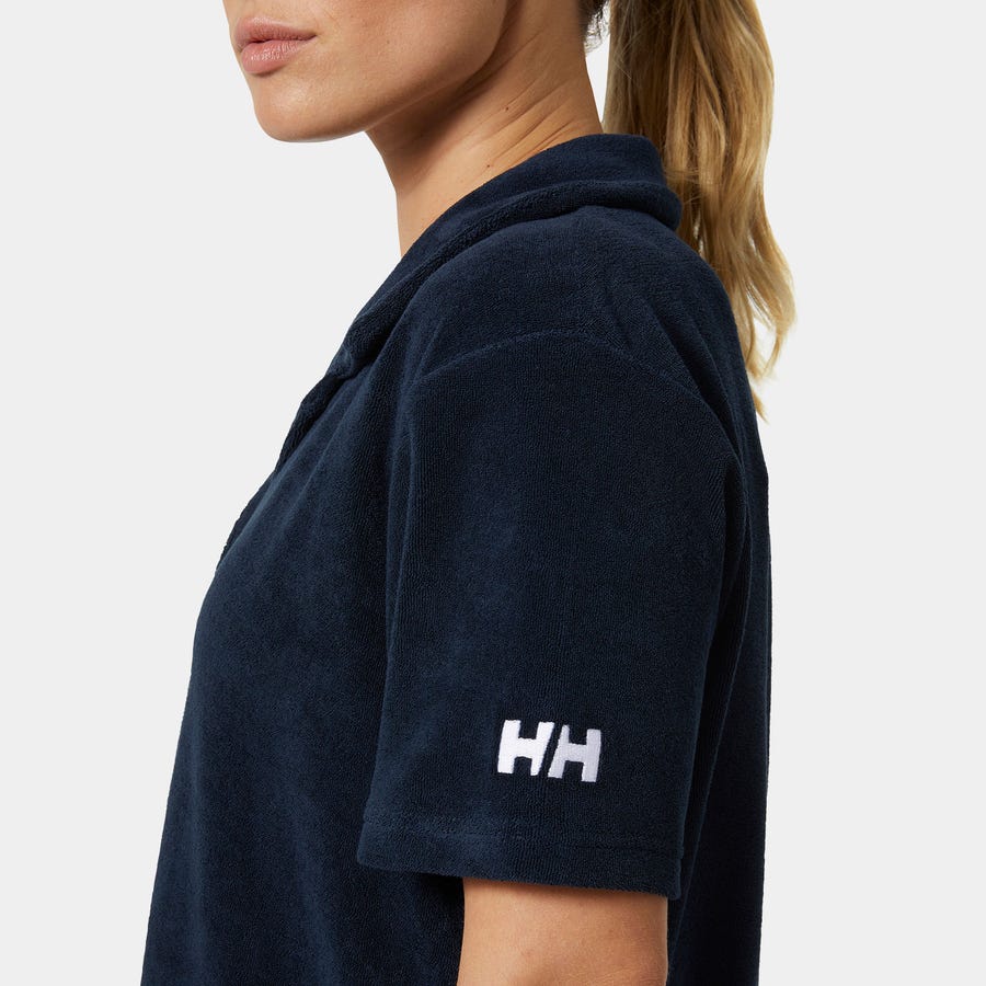 Enjoy casual summer comfort in our Women's Siren Towelling Dress. The terry cloth feels soft to the touch and dries quickly. The dress also features a removable belt as well as our classic HH logo embroidered on the sleeve. This button-up shirt dress is made with high quality threads and organic cotton. See composition for more details.