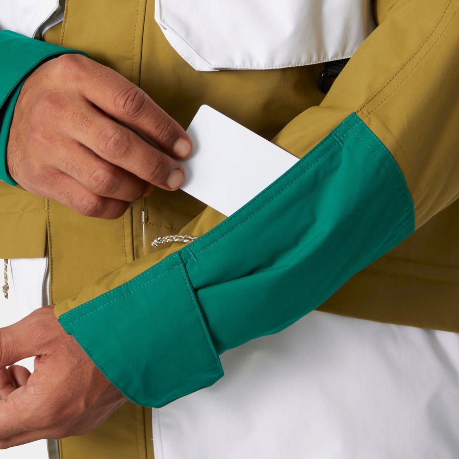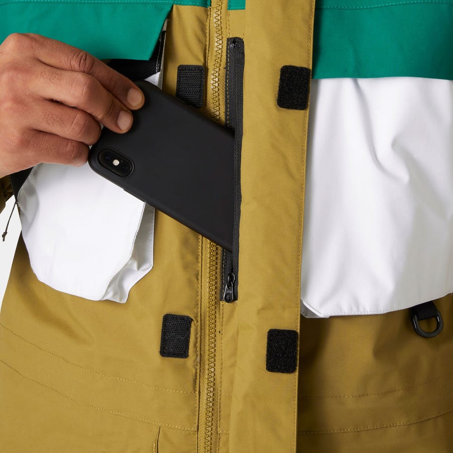 For freestyle and freeride skiers, our Unisex ULLR D Heritage Long Jacket offers professional-grade protection with a 90s aesthetic. As with other ULLR D products, this jacket has been developed with and tested by professional free skiers. We've constructed this long ski jacket with our breathable/waterproof Professional technology to keep you warm and dry on the snow. Its utilitarian design features a cinchable waist, adjustable powderskirt, and multiple pockets, including a LIFE POCKET for maintaining the life of your phone battery in the cold. The jacket's hood also hints to classic 90s designs: you can remove the hood and play it cool with a high collar, or you can keep the hood on and wrap it around the collar for even more protection. Whether it's sunny or cold outside, this jacket ensures you're ready to shred. The jacket is made with certified bluesign material as well as recycled materials in the lining. See composition for details.