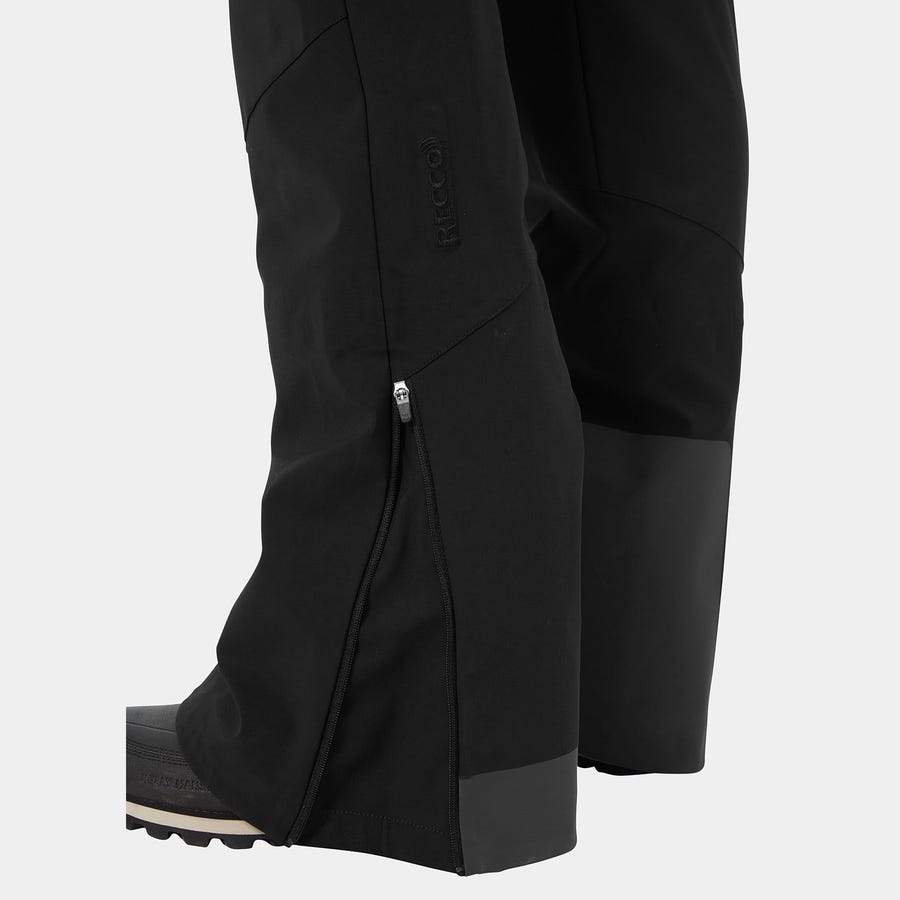 The Women's Odin Backcountry Softshell Bib Pants are the perfect choice for your backcountry ski touring adventures. Crafted from a lightweight, stretchable 4-way fabric, these pants provide you with maximum movement during long ascents and steep drops. RECCO reflectors provide added searchability in backcountry terrain. Adjustable elastic suspenders ensure a comfortable fit, while thigh pocket and D-ring offer secure storage and attachment points. We've also added a side zipper so you can regulate your temperature and easily get them on and off, along with snow gaiters at bottom legs to keep snow out while you're cruising through deep powder. For temperature regulation, we've added mechanical ventilation zippers, so you don't overheat and stay comfortable in any conditions. Well thought out details like an adjustable bottom leg, reinforcement on bottom leg, gusset in crotch for freedom of movement, and articulated knees for better comfort and fit make these pants move with you. Strategically placed hand pockets provide storage for any essentials you may need during your adventure. The perfect companion to the Odin Backcountry Softshell Jacket. which is made from the same body-mapped fabric construction.